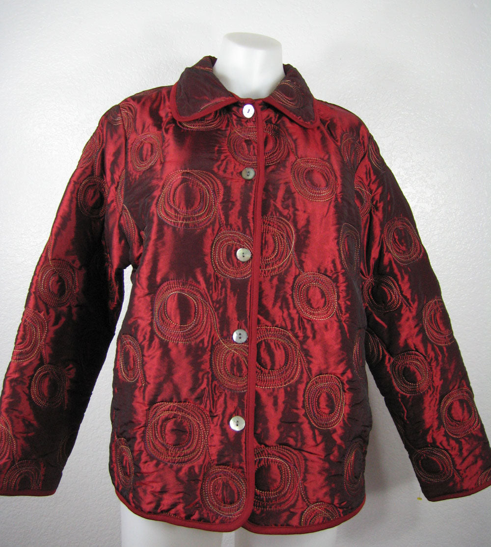 Stay warm and stylish this winter with this beautiful burgundy NOTATIONS quilted jacket. The jacket features: